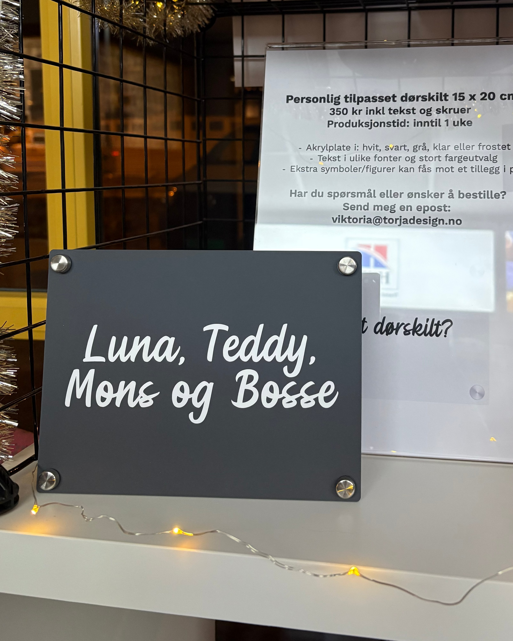 Du får tilsendt et utkast av skiltet med ditt trykk på epost før det trykkes.